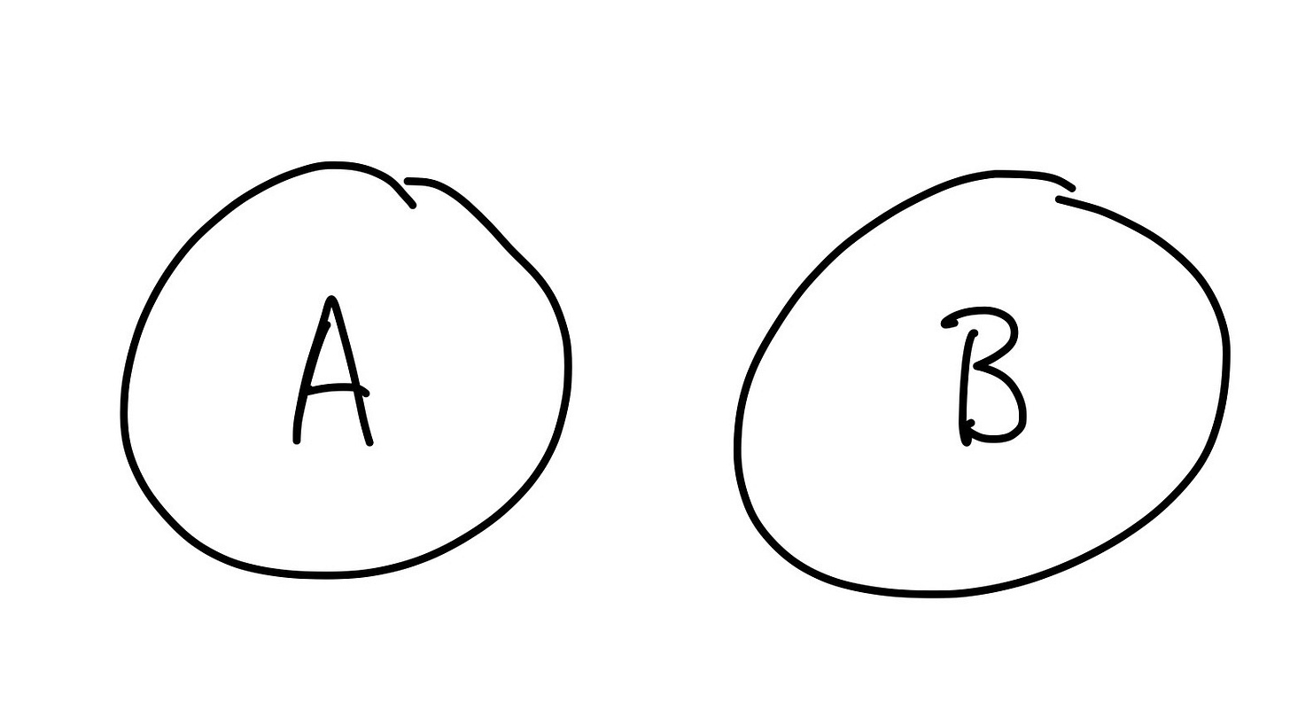 Figure 9-1: Disjoint sets A and B