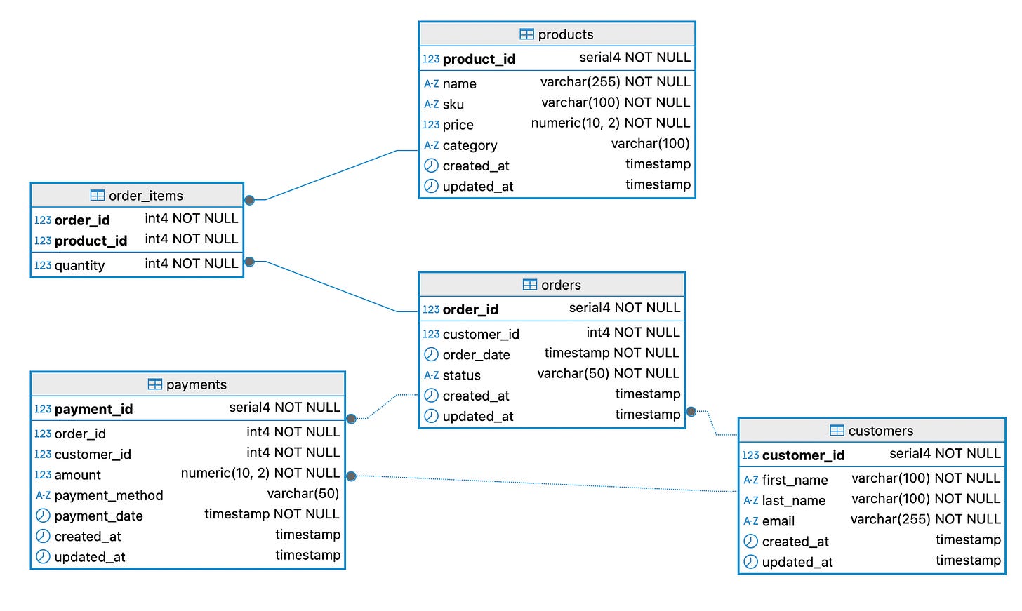 Mike: That’s a separate Payments table. It includes payment_id, order_id, customer_id, amount, payment_method, and payment_date.
